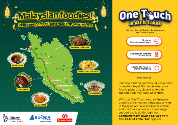 So, whether you’re on the way to indulge in Negeri Sembilan’s infamous Masak Lemak Cili Padi, or have delicious local goodness elsewhere, rest assured that Liberty is committed to providing seamless assistance, making your Raya foodie road trip an unforgettable and worry-free experience.
