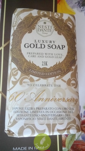 The first Nesti Dante soap I used from the box sent to me lasted well over a month but I knew it would because of the larger than the average soap size. It really feels heavy and bulky so despite the higher than the average soap price, it’s worth it for the size and quality. The second Nesti Dante soap I am using is the Gold 60th Anniversary soap.