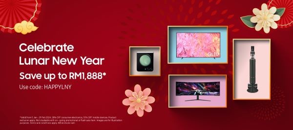 As a gesture of goodwill and celebration, Samsung Electronics Malaysia is extending a 10% discount on the Recommended Retail Price (RRP) for chosen Mobile products. This generous discount is capped at an auspicious RM1,888. But the festivities don’t stop there – revel in the joy of a significant 28% discount on the RRP for selected Consumer Electronic products, also capped at RM1,888! As a symbolic touch, use the code HAPPYLNY during checkout to unlock these remarkable discounts, echoing the spirit of “huat” prosperity in the Year of the Dragon exclusively for online promotion.