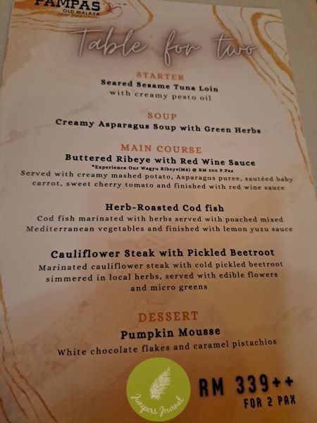Overall, it was a great dining experience at Pampas where the service and food are superb. However, if I am there the next time, I’d just order a Starter or Soup and the Main Course from the regular menu. I would like to thank Pampas for the special presentation and delivery of the dessert on my milestone birthday.