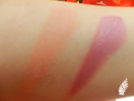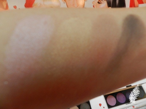 Very pretty and cute design on the powders. These are powders with a pearly finish and are used in the same way as MAC’s Beauty Powder, i.e. to highlight the high panels of the face. I can see myself using Flatter Me as a blush as I like peach cheek shades.