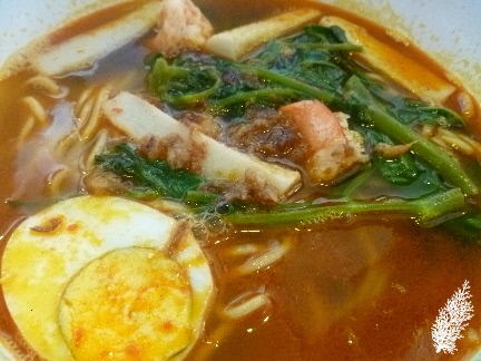 I guess the caramel coffee was worth the wait as it was really good and this coming from someone who stays away from caramel. It wasn’t too sweet and complemented the coffee perfectly. I think the drinks at this cafe are far better than the food but don’t take my word for it since I have only tried the prawn mee which I think was worth RM5.90, certainly not RM8.90. They could have given an entire boiled egg instead of just half and the 3 miserable prawns and few strands of kangkung hardly justified the price.