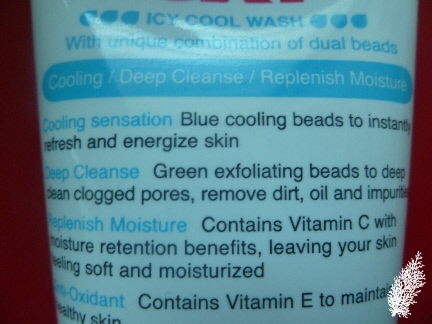 OXY Icy Cool Wash contains dual beads – blue cooling beads for instantly refreshing and energizing while giving skin a cooling sensation and green exfoliating beads for reaching deep into pores to remove trapped dirt, oil and other impurities. The dual beads are said to enhance exfoliation and slough away dead skin cells. They are micor in size and really do feel very gentle on my skin.