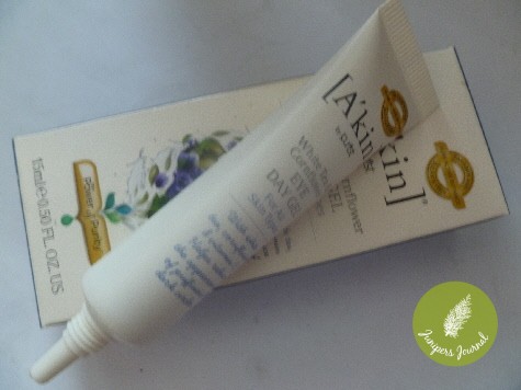 This is the newly improved version of the A’kin White Tea & Cornflower Eye Day Gel, now formulated with the concentrated nature of Sambucus Extract and Vitamin C. As this is a gel, the texture is extremely light and fluid, so fluid in fact that when I place it on my fingertip, I have to quickly apply it otherwise it slides off.