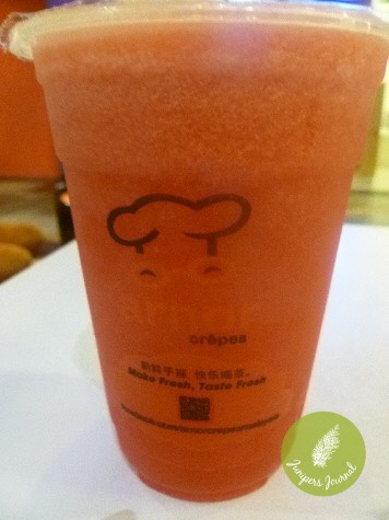 I ordered the green tea, honey and banana crepe @ RM5.90. With each order of crepe, you can have a watermelon juice for RM2.90 otherwise it’s RM5.90 (buy 1 free 1). The crepes are made upon each order and you can watch yours being made.