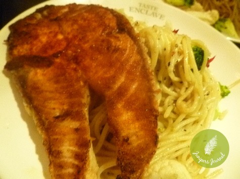 Turned out it was the right choice because it was a chunky piece of salmon which wasn’t dry. It was in fact very appetizing and I got a generous portion of aglio oglio spaghetti which was a little bit salty but the salmon more than made up for that.