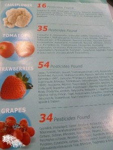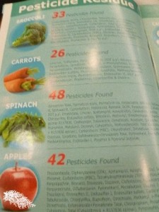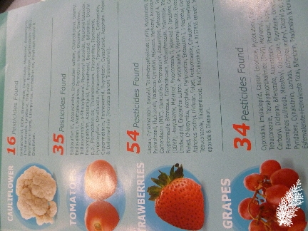 The following images show the number of pesticides found in various fruits and vegetables:-