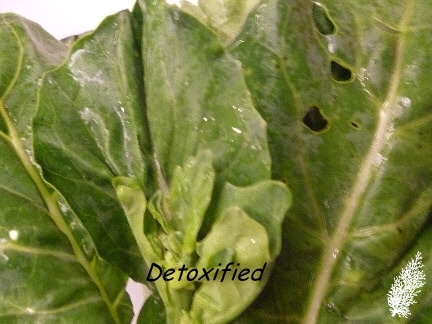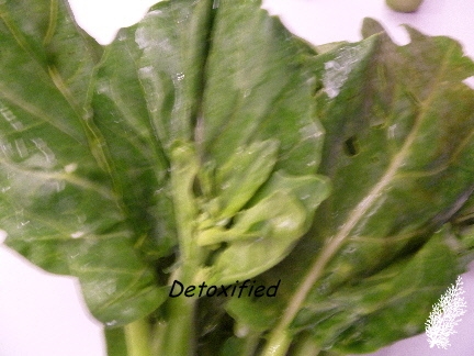 As you can see from the images below, the vegetables which have been detoxified for 8 minutes appear greener, fresher and much more appetizing than the vegetables which have not been detoxified.