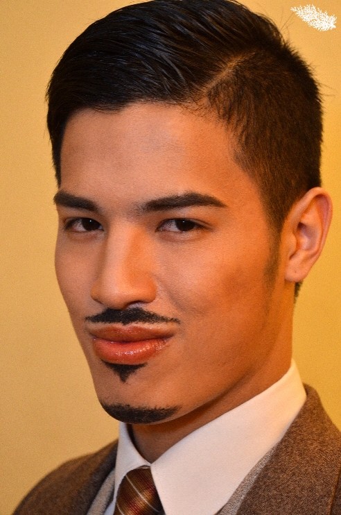 For this character, the focal point is the stubble under his lips and his moustache. Stev used eyebrow pencil in Spiked to draw a guide where the facial hair would be and after that, he used Lushlash mascara to dab on the lines so that natural looking facial hair would be created. On the lips, Taupe lipstick was used in the same way as described above (see Herr Schultz’s look).