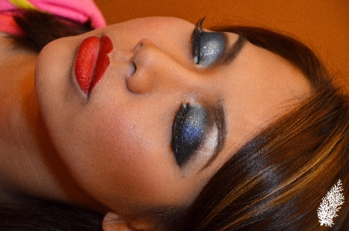 From where I was sitting watching the performance, Lulu a.k.a Hunny Madu’s look really stood out as the blue colour on her eyes was stunning (thanks to the use of pigments). I liked this look very much as it enhanced her naturally deep set eyes. The idea was to give her character a very dramatic look. Stev started off with the eyebrows which are “neat, dark and sharp.”