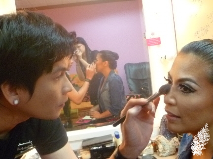 Here’s a little peek into what goes on behind “The Secret Life Of Nora”. Behind Tiara Jacquelina’s dressing room door, we have Shahrum, M.A.C’s Special Events Artist doing her make-up (there are 3 make-up looks throughout the show).