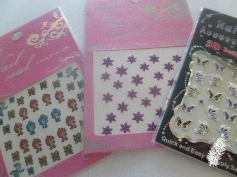 As soon as I got out of Mochit BTS Station and walked towards Chatuchak, I spotted a vendor selling a myriad of nail stickers for 20 baht each, they are also 20 baht at a nail product supplier in MBK but for some strange and inexplicable reason, I never found the MBK supplier again despite my best efforts. I found the MBK supplier on the 1st day of my visit and tried looking for him everyday after that but all my efforts were in vain, it was as if he had disappeared into thin air and it didn’t help that I couldn’t remember what floor he was on. The Angry Birds and festive sticker sets are from MBK while the others are from Chatuchak vendors.