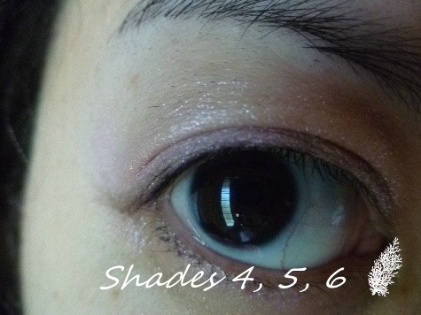 b shades 456shades456All eye shadows were applied without any eye shadow primer beneath.The eye shadow and liner brush were useful and were used to apply the eye shadows in the looks above. It’s much better to have brushes albeit mini versions than sponge-tipped brushes which should have no place in non-drugstore eye shadow palettes.