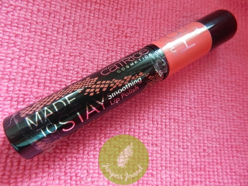 At first glance, Catrice Made To Stay Smoothing Lip Polish looks more like a lip gloss than a lipstick even though it is described as having “the colour of a lipstick, the longevity of a stain and the shiny finish of a lipgloss.” I had a (bad) surprise when I opened the cover. There was no flock applicator. How on earth was I supposed to apply it? So I inserted a cotton bud and the end came off. It is like an applicator sucking device. Anyway, I managed to get some product out with a second cotton bud. The shade is Strawberry’s Secret, it’s a coral and quite nice.