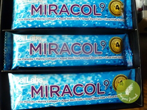 Having seen the ads in the papers when Miracol 9 was first introduced, I was highly curious about it. This is CellLabs latest product with an anti-aging formula with 3 key ingredients – Placenta + Stem Cells + Marine Collagen. It’s known as “the super cells enhancer formulated to replenish and reenergize your cells”.