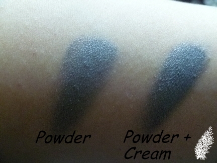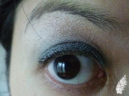 Out of the 3 sets available, I liked this set the best because this can create the true smokey eye, in my opinion. It’s akin to a gunmetal grey shade which doesn’t look too out of place if used during the day. Even without the cream eyeliner as a base, the powder eyeshadow goes on quite smoothly but there is some fall-out when it’s applied with the sponge. Not fantastic quality but okay for the price, I guess.