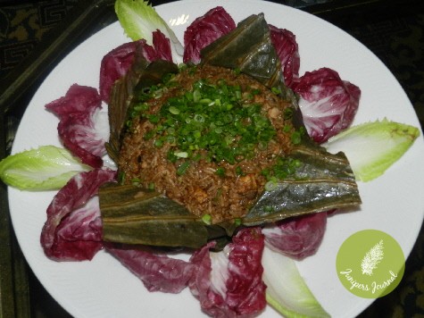 Steamed Lotus Leaf Rice with Diced Chicken and Yam