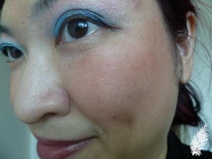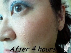 If you follow the directions on the reverse of the box, different shades can be applied on different areas of the cheeks and T-zone but I haven’t followed that. I just swirl all the shades together and I think the combination of all four is quite nice without much shimmer. The brush included in the palette isn’t great for even distibution. I prefer using a bigger brush than this.