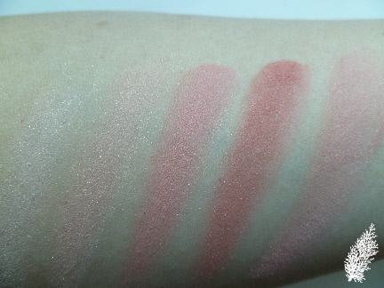 There are four shades ranging from shimmery white to an intense peach (see swatches below, last swatch on extreme right is a combination of all four shades):-