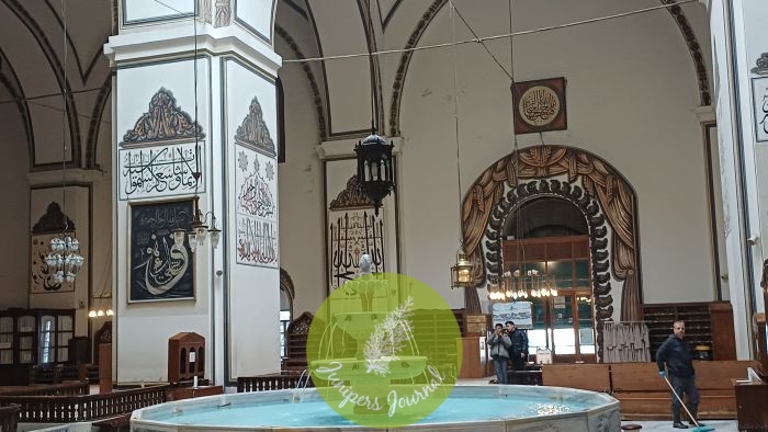 Next stop not too far away was the Grand Mosque from the time of Sultan Bayezid I built between 1396 and 1399 to commemorate his victory in the Battle of Nicopolis. This is the largest mosque in Bursa and the first in what was then the capital of the Ottoman Empire. There is a unique water fountain and basin in the centre and the calligraphy around the mosque is stunning.
