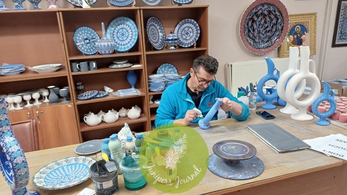 After the tour of Çardak Underground City, our tour group headed towards a Ceramic & Pottery Workshop which has existed since over a century ago. This workshop is located in Avanos town and the hand made products are hand decorated with special Anatolian motifs, some of which date back to the Ottoman age. The products are exquisite, each and every one of them are unique and incredibly beautiful.