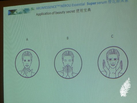 Now for the Decleor star product – the Serum and in this workshop, we all used the AROMESSENCE™ NEROLI. The serums don’t come with a dropper so they are applied directly to the 3 middle fingers of one hand, warmed up a bit before inhaling 3 times and applied to different parts of the face including the under-eye area and temples using point massage (5 seconds each time). This particular serum is a blend of neroli, sandalwood, petitgrain, sage, parsley and juniper berry so you can imagine it smells super-duper marvellous and so very relaxing but more than just satisfying the olfactory senses, it is for restoring skin radiance and softening.