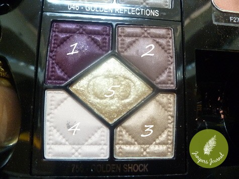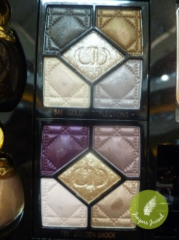 This morning I stumbled upon the Dior promo area at MidValley’s Centre Court and checked out their Holiday Collection, Golden Shock. The colours for eyes, lips, cheeks and face are stunning. There are 2 eyeshadow quints and the palettes promise sensual eyes, cloaked in bronzes, grey and beige (046 Golden Reflections), or a bewitching gaze, highlighted with pinks, purples and gold (756 Golden Shock).