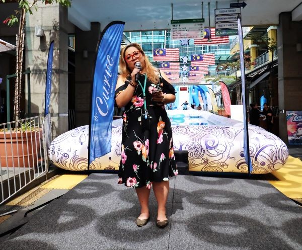 Elaine Liew, Centre Manager of the Curve giving the welcome note at the launch of Slide the Curve, sharing insights on the 20-day excitement, and the Curve being a hub for families and thrill-seekers alike