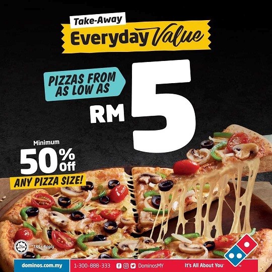 This collaborations shows off Domino’s long-term effort to ease consumers financial struggles by expanding their wallets with extraordinary savings. Everyday Value is an always-on promotion that provides an array of value for money deals for customers’ to enjoy, from pizzas as low as RM5, to 50% OFF and Buy 1 Free 2 deals, for both delivery and take-away services – Domino’s has it all!