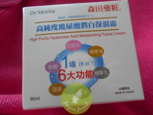 I have tried quite a few Dr Morita facial masks now but this is the first time I am trying a Dr Morita moisturizer. This High Purity Hyaluronic Acid Moisturizing Facial Cream contains a high quality of sodium hyaluronate imported from Japan. This 90ml tub is far bigger than your average sized moisturizer (normally 50ml) so it will last a few months longer.