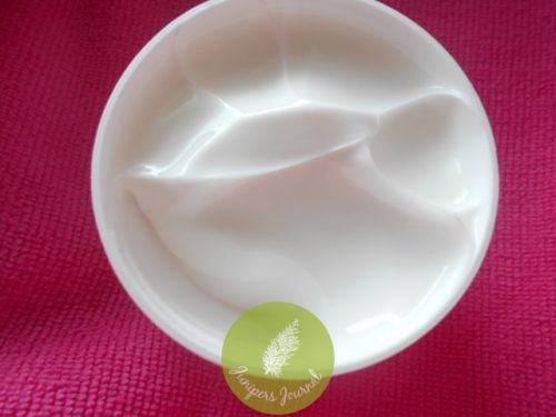 It comes with a spatula, it’s creamy but not too thick. However it might be a bit greasy for those with oily skin. It’s okay for those with dry skin like mine. fast absorbing and high hydration factor.