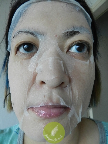 It feels moist but not so full of serum that it drips everywhere. It is recommended to be applied for 15 minutes but I have kept it on for half an hour. I really like the feel of this mask on my skin, more than any other sheet mask I have used recently. Keeps my skin hydrated and soft for hours after it has been removed.
