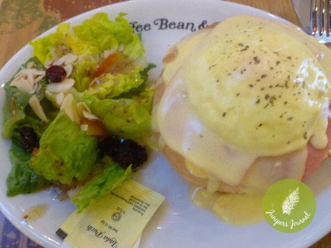Eggs Benedict is a classic breakfast or brunch dish and even novices should be able to get it almost right. After all, how difficult is it to make poached eggs? The egg white should be set and the yolk remain soft. Of course, it would be great if paired with bacon but at CBTL, they pair it with turkey ham which I knew would not make this dish awesome.