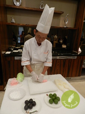 Chef Chai demonstrated how mooncakes are made with great dexterity and speed. I am sure it is a lot harder than it looks but the way he created each one, it looked like anyone could do it. Talking to the Chef afterwards, I realised why certain mooncakes are so expensive, ingredients such as chestnuts from China have increased in price by 400% due to flooding in China.