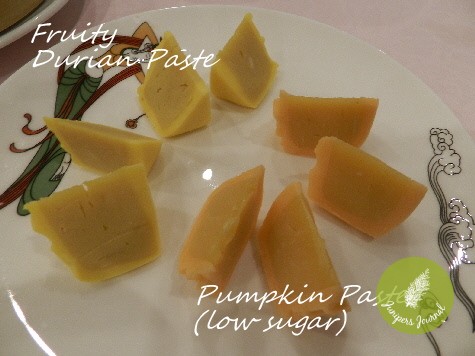 Quite a few of my fellow mooncake tasters declared that they liked the Fruity Durian Paste as the smell of durians isn’t too heavy. The Pumpkin Paste is good as it isn’t too sweet and rich in pumpkin, very dense and one feels like a lot of real pumpkin has been used instead of pumpkin  essence.