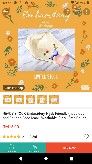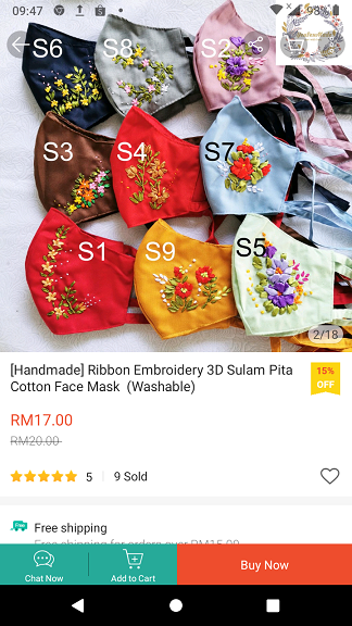 After the Shopee Malaysia 7.7 Sale, I found these hand embroidered masks which have a floral theme. I think they are exquisitely beautiful and justify the higher price of between RM15-19.50. Despite the price, some of the masks have already sold out probably long before I found their pages. So tempted to buy one of them but I already have dozens of fabric masks bought over the past three months.