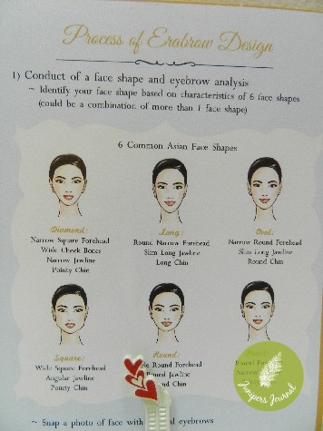I didn’t get to try the Sake Facial on my 1st visit a few months back but I was offered a complimentary brow shaping which would cost RM50 for 1st trial. The service takes 20 minutes. Before they start to shape your brow, you are given a face chart to look at. There are 6 face shapes on the chart and you are guided on which is your face shape which could be a combination of 2 face shapes. The 6 face shapes are diamond, long, oval, square, round and heart.