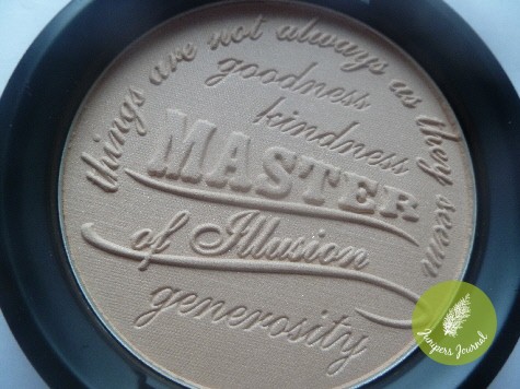 The packaging is very simple as the cover is plastic and transparent, really no-frills and I guess that is why the price is very reasonable. I was expecting shimmer galore but that isn’t apparent on the surface of the powder which by the way is very pretty what with all the embossed words relating to the movie.