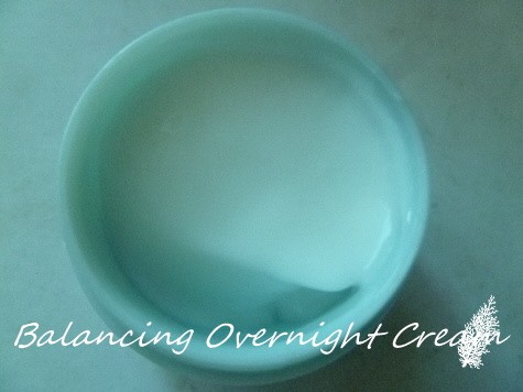 The Balancing Overnight Cream feels thicker and richer than the Balancing Day Cream. This one contains Borage, Irish Moss and Spirulina Extracts.