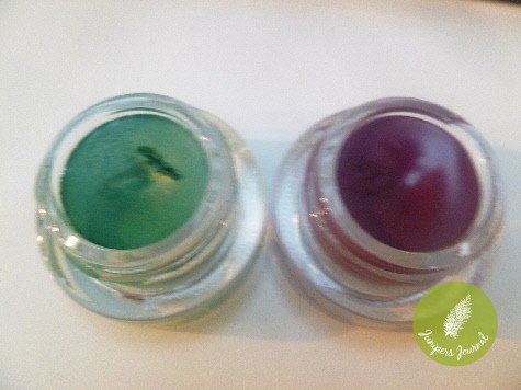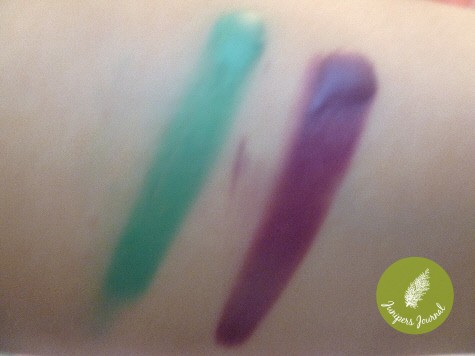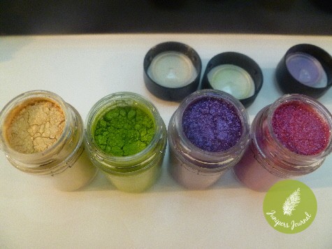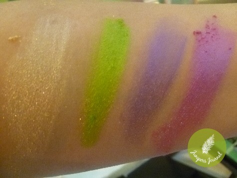 LILY-WHITE pale butter-yellow shimmer, CHARTREUSE BOUQUET shimmering acid green, VIOLET vivid bright violet purple,  PINK PEARL shimmery lavender pink