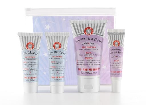First Aid Beauty’s FEEL FAB KIT is an airport-friendly kit with four products to keep skin clean, hydrated and soft when on the go : 28.3g Face Cleanser, 30ml Daily Face Cream, 59.1ml Smooth Shave Cream & 14.8ml Ultra Repair Lip Therapy.