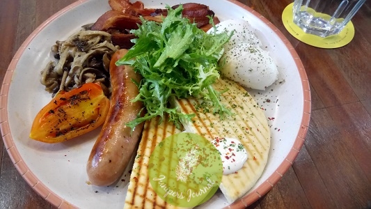 When I went into the café, only one table was occupied but after I ordered, the crowd came trickling in and more than half the café was filled by the time my food arrived. I had the Big Boy Breakfast @ RM32 which consisted of pork sausage, grilled tomato, mushroom ragout, pork bacon, flat bread with sour cream and free-range eggs any style (poached/scrambled/sunny side-up/over-easy). A bottle of water is provided without having to request for it. That’s great because so many restaurants nowadays refuse to serve anything but mineral water which costs almost as much as a cup of tea or coffee.