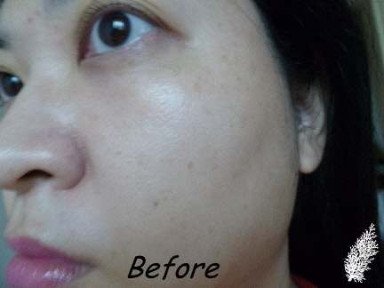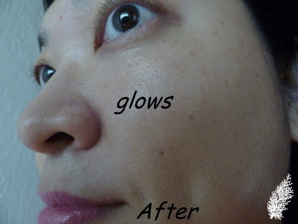 As the primer only gives a slight dewy effect to skin, this effect is much more apparent on bare skin. Skin doesn’t look so luminous once foundation/powder is applied. It’s a nice skin enhancing product if one usually goes without make-up.