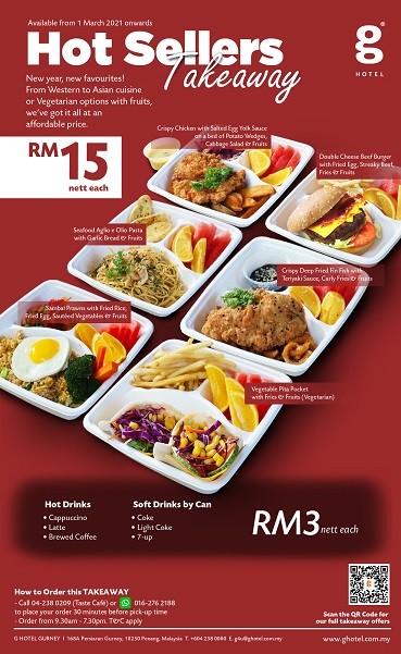 Normally we associate hotel food with high prices but at G Hotel Penang, you can order takeaway at reasonable prices & from 1st March, the hotel offers lip-smacking hot sellers featuring Western and Asian cuisine as well as vegetarian options. Every dish comes with a side of fruits. This makes a very balanced and healthy meal.