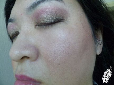 No issues with the textures of the eyeshadows, all gave excellent colour pay-off, went on smoothly, blended beautifully and had long staying power even without the use of eye primers. I used the pearly oyster shade, Verve all over my lids as a base and as a highlighter, then applied Suspect from the inner corners of my lids towards the middle and Darkhorse on the outer corners of the lids blending with Suspect.