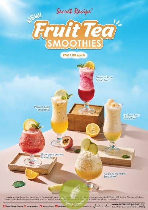 To complement the rich flavours of the Golden Egg Series, Secret Recipe’s new Fruit Tea Smoothies (RM11.80 each) provide a refreshing contrast with sweet and fruity notes. Cleanse the palate with the vibrant and zingy Strawberry Lemon Smoothie, the tropical Passion Mint Smoothie, the elegant and fragrant Tropical Rose Smoothie, the fresh and thirst-quenching Lychee Mint Smoothie, and the zesty Apple Calamansi Smoothie.