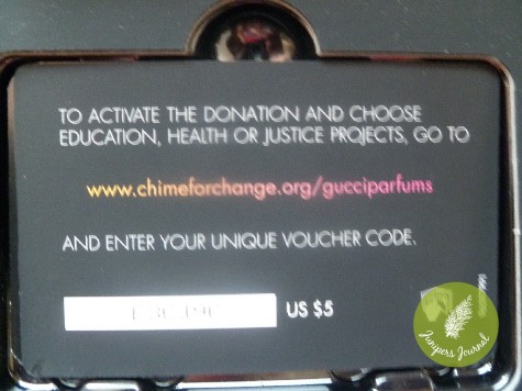 “We are so proud to participate in this life-changing program,” said Crewes. “It was important for Gucci Parfums to join forces together and support the CHIME FOR CHANGE movement. We are engaging consumers and lovers of Gucci fragrances to help us on our mission. When a consumer purchases a Gucci fragrance, she or he finds a unique code on the pack. That code is entered on www.chimeforchange.org and the purchaser can decide where the donation goes: Education, Health or Justice. Consumers can instantly share their contribution on social networks and follow the impact of the donation.”