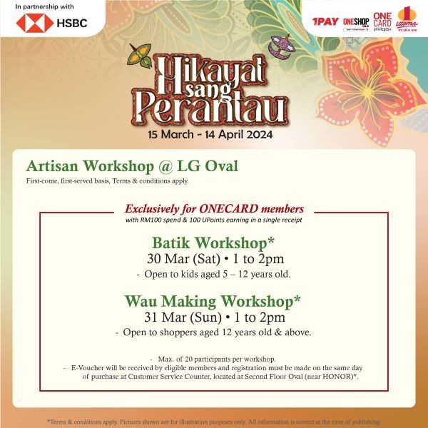 Spend a minimum of RM400 (RM600 for non-ONECARD members) and redeem Hari Raya Aidilfitri gifts, whilst stocks last.