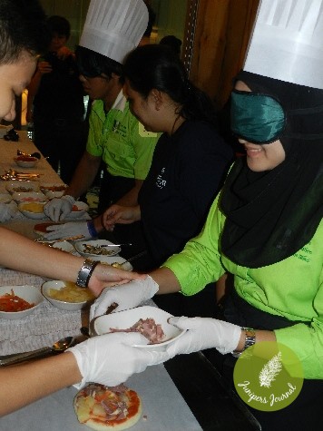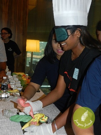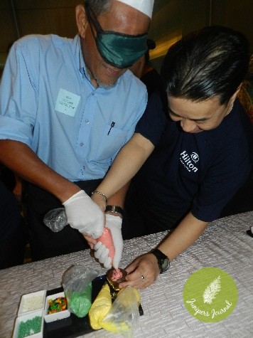 More than RM14,000 in total was raised in five days where all hotel Team Members were involved in the sale of the cookies. The funds were presented to the organizations during the celebration event held at leveL7even, Hilton Kuala Lumpur. During that event, MAB was pitched against MAF in a pizza assembly and cupcake decorating contest with the participants’ blindfolded. I think it is a lot harder to decorate cupcakes blindfolded than to assemble pizzas blindfolded!