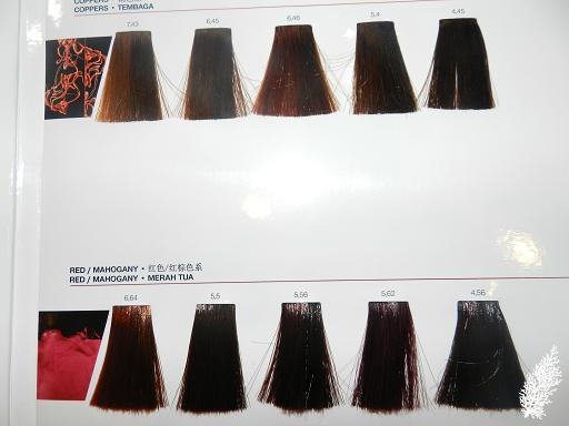 As I’m not partial to browns, I chose the brightest shade of mahogany (bottom row, extreme left), Experience tells me that just because it looks vibrant and bright in the sample book doesn’t necessarily mean it’ll translate to that exact shade when applied. It’s usually be 1 -2 shades darker than the sample unless I’ve got my hair bleached which I wouldn’t be prepared to do.